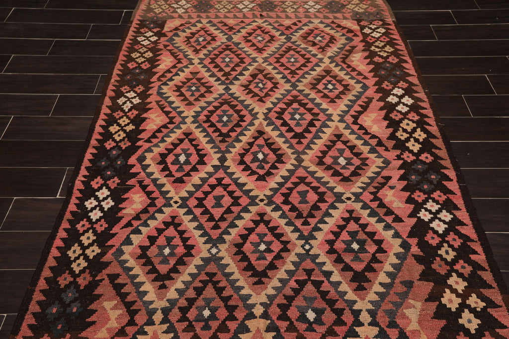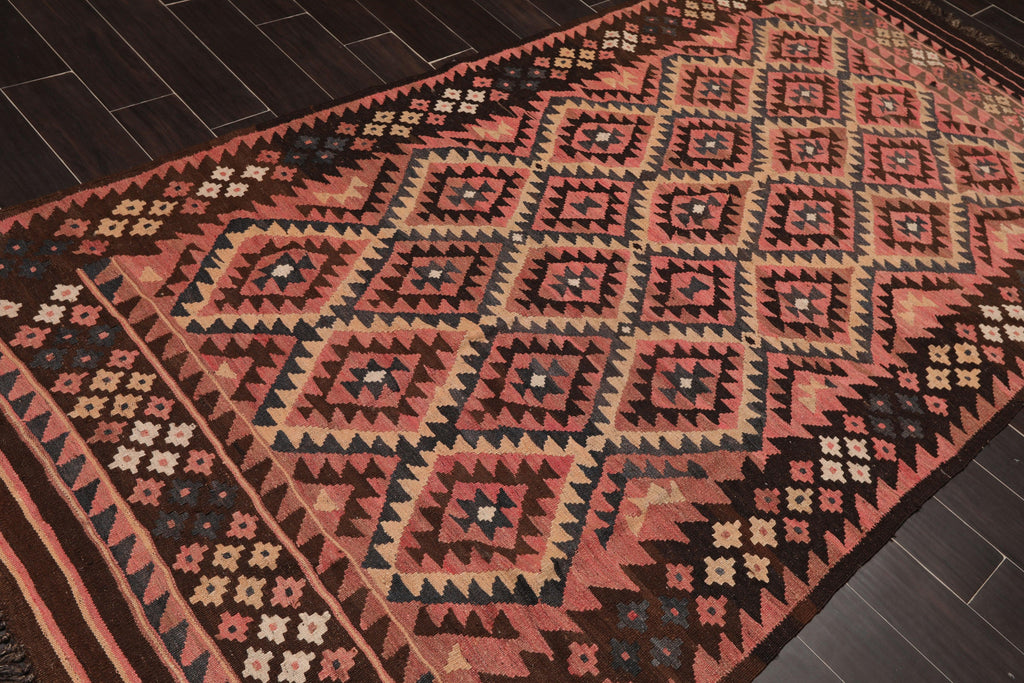 This is a beautiful Rose, Rust, Chocolate, Blue, Beige, Multi Color Authentic Reversible Southwestern Afghan Kilim Hand Knotted Persian Oriental Area Rug Wool Rug. Its elegant style is easy to decorate with and perfect for living room, dining room, bedroom or anywhere in the residence or office.