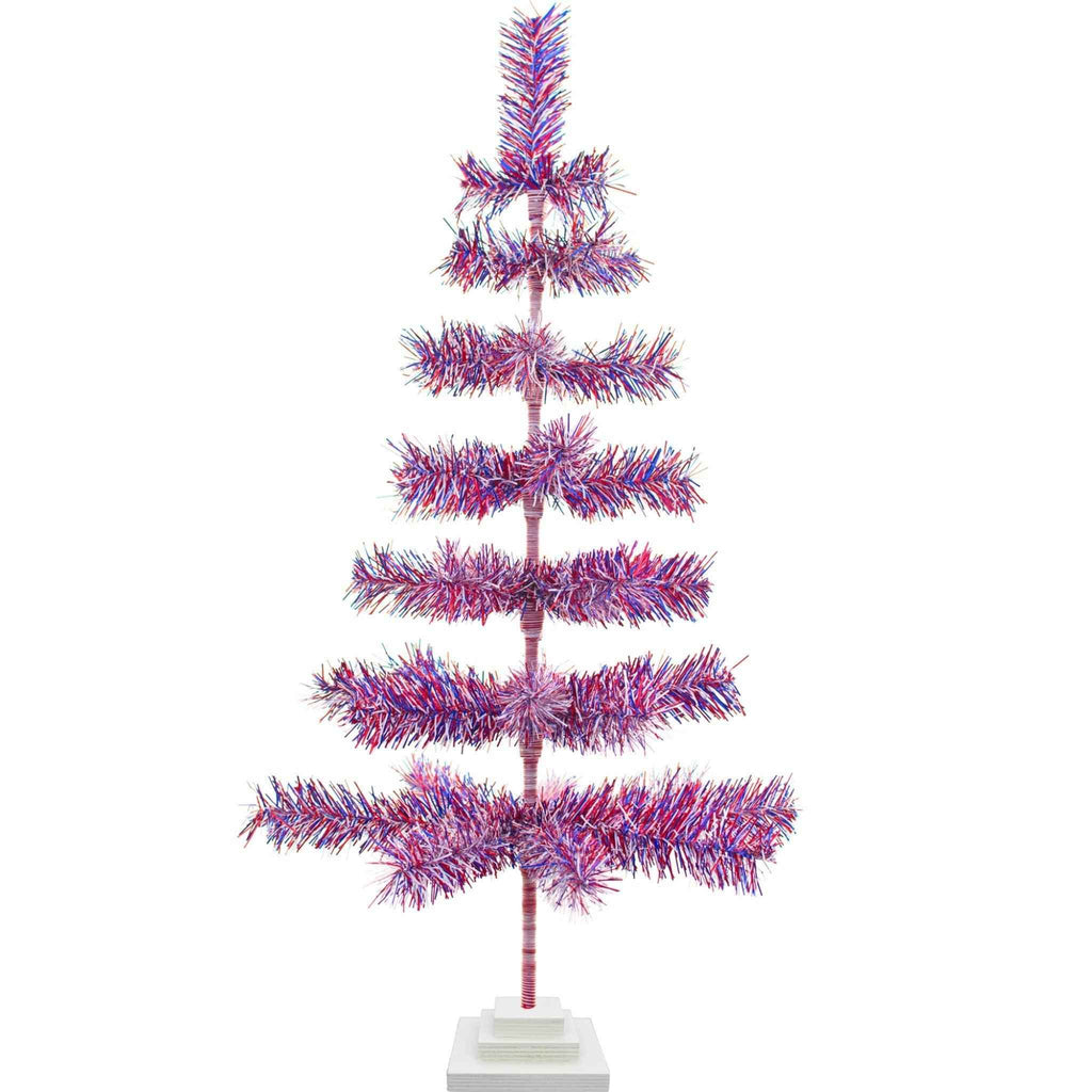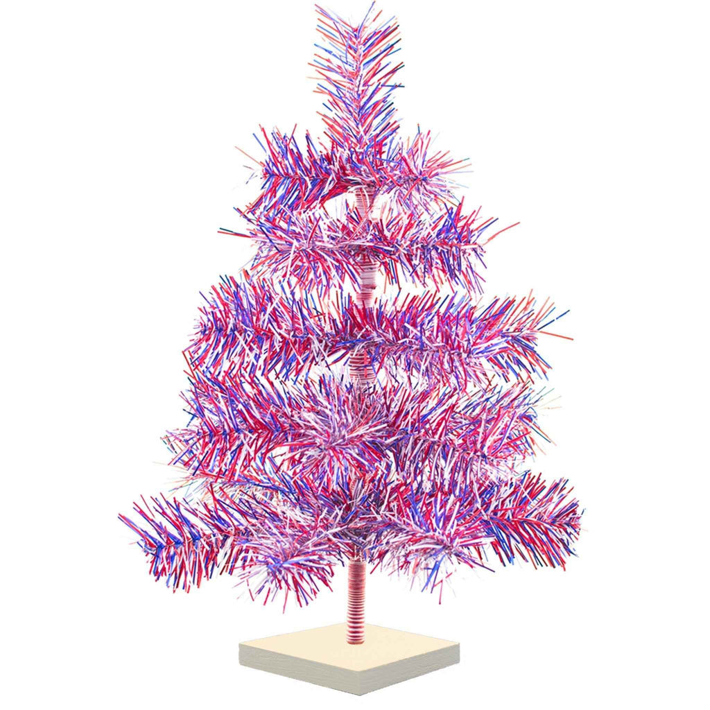 Red, White, and Blue Firework Tinsel Christmas Trees made by hand in the USA