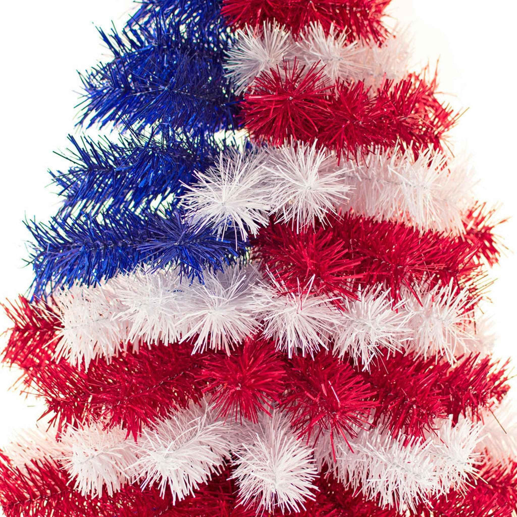 Hang a Red, White, and Blue Christmas Tree from your front door with Lee Display's handmade 4th of Wall Tree