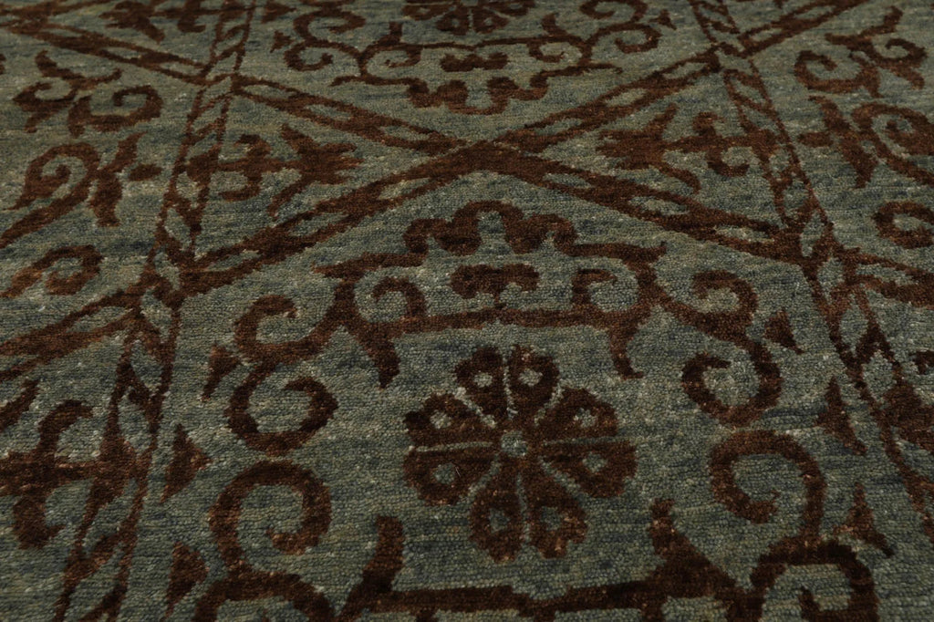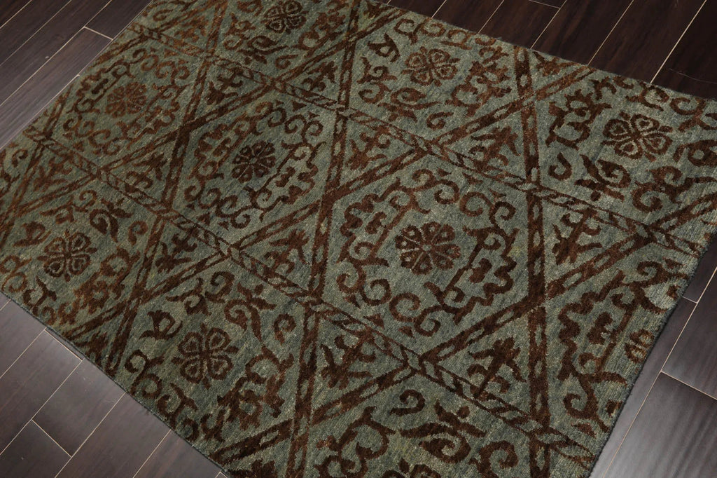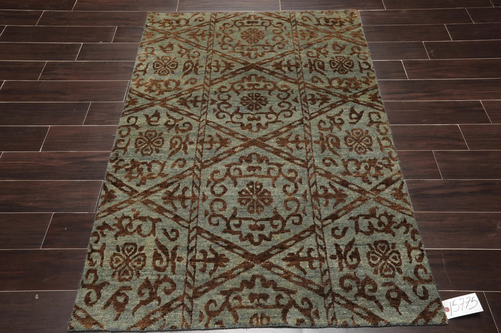 4x6 Aqua, Brown Hand Knotted Indo Tibetan New Zealand Wool Transitional Oriental Area Rug