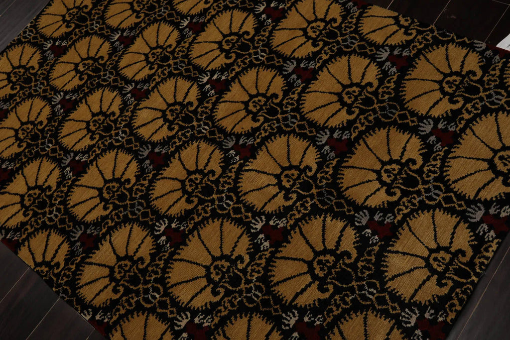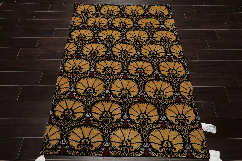 4x6 Black Hand Knotted Tibetan 100% Wool Art Deco Oriental Area Rug