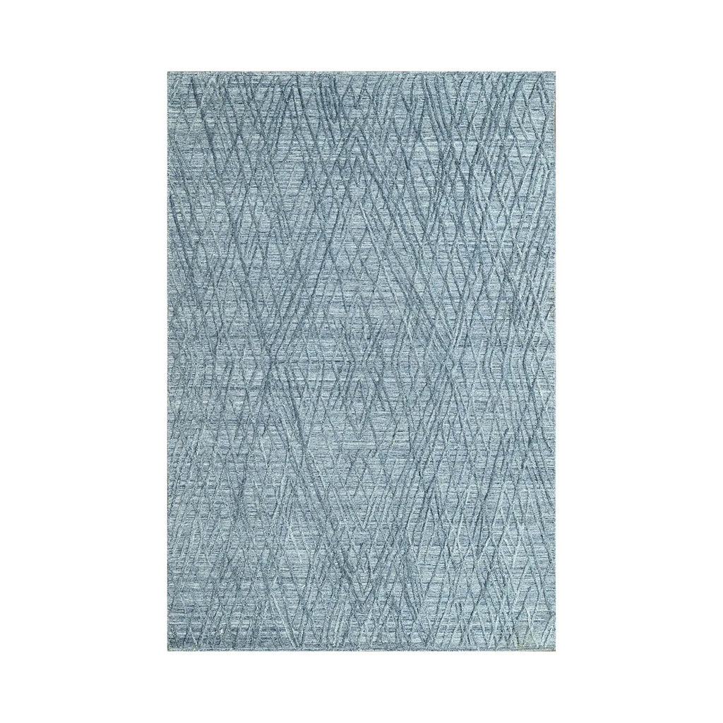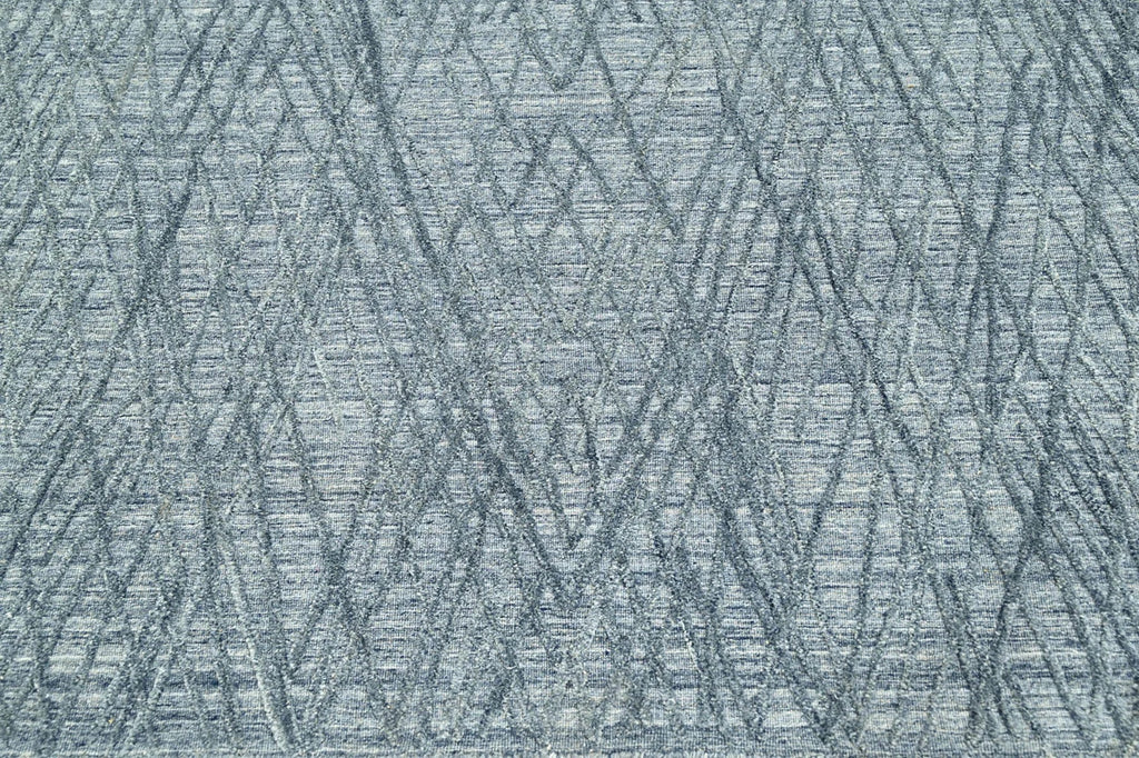 Before you is a beautiful Blue & Gray Color Hand Knotted LoomBloom Tibetan Wool High Low Pile Designer Rug from India. Specially developed and created to keep up with the modern design trends and needs, the rug is a beautiful blend of high-quality wool and unparalleled craftsmanship. Its High Low pile creates interesting visual intrigue and adds instant drama and glamour to its surroundings. Even the color palette is extremely soothing! It works towards creating a harmony within disparate decor elements of home interiors. Get the rug to add visual intrigue and dimension to your decor aesthetics.