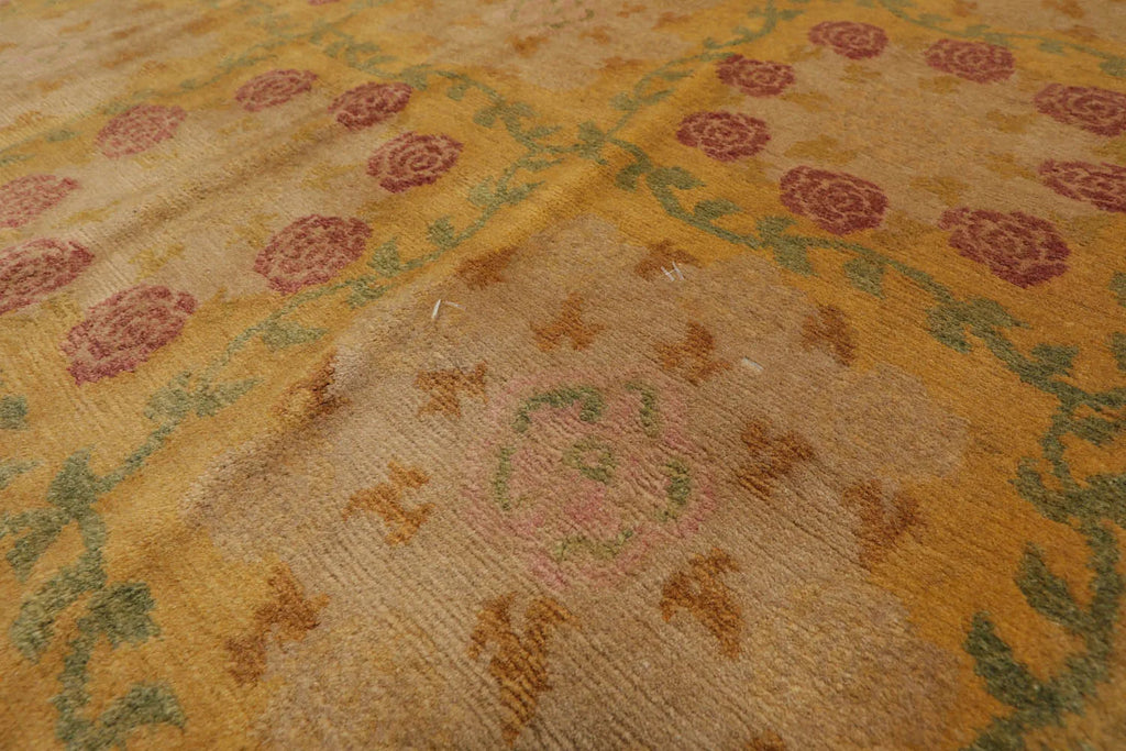 Story Behind the Art For centuries Tibetans have used rugs for decorative and functional purposes, drawing upon geometric patterns, auspicious symbols, real and mythical animals, and natural imagery to create beautiful, colorful designs. But it was only after 1959 with the Chinese invasion of Tibet and the growth of Tibetan diaspora in Nepal and Tibet that Tibetan rug weaving underwent a crucial commercial revival. In the 1970s, Tibetan rugs rose to prominence and Nepalese artisans, drafted in to keep up with the rising demand, became the mainstay of the Tibetan rug weaving traditions. While either Turkish knot or the Persian knot (Senneh knot) is used to create the pile or depth of a rug in most of Asia, the Tibetan rug utilizes a slit-loop technique called the Tibetan knot. Here rugs are woven by wrapping a continues length of yarn over a rod laid across the warps stretched on the loom. When the rod has been wrapped for its entire length, a knife is slid along the rod, cutting the wrapped yarn into two rows of pile tufts. The resultant pile is a wonderful mix of depth, texture and richness. Traditional Tibetan rug motifs generally reflect the importance of Buddhist religion in Tibetan art and culture. Many design elements of Chinese origin like the phoenix, dragon, and lotus symbols alongside motifs from Chinese decorative tradition have also been assimilated in the rug repertoire of this region. In modern times, designs featured in Tibetan, Nepalese rugs (those woven by Tibetan refugees in Nepal) and Indo-Tibetans (woven in India) range from Westernized adaptations of traditional Tibetan motifs (such as branching floral designs and snow lions) to a large mixture of foreign and modern free-form patterns.