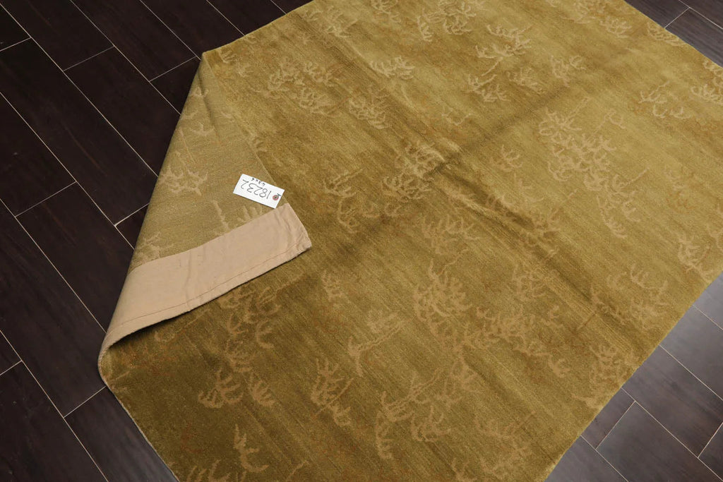 This is a beautiful Lime, Tone On Tone Color Hand Knotted, Tibetan Oriental 100% Wool Rug.