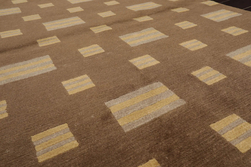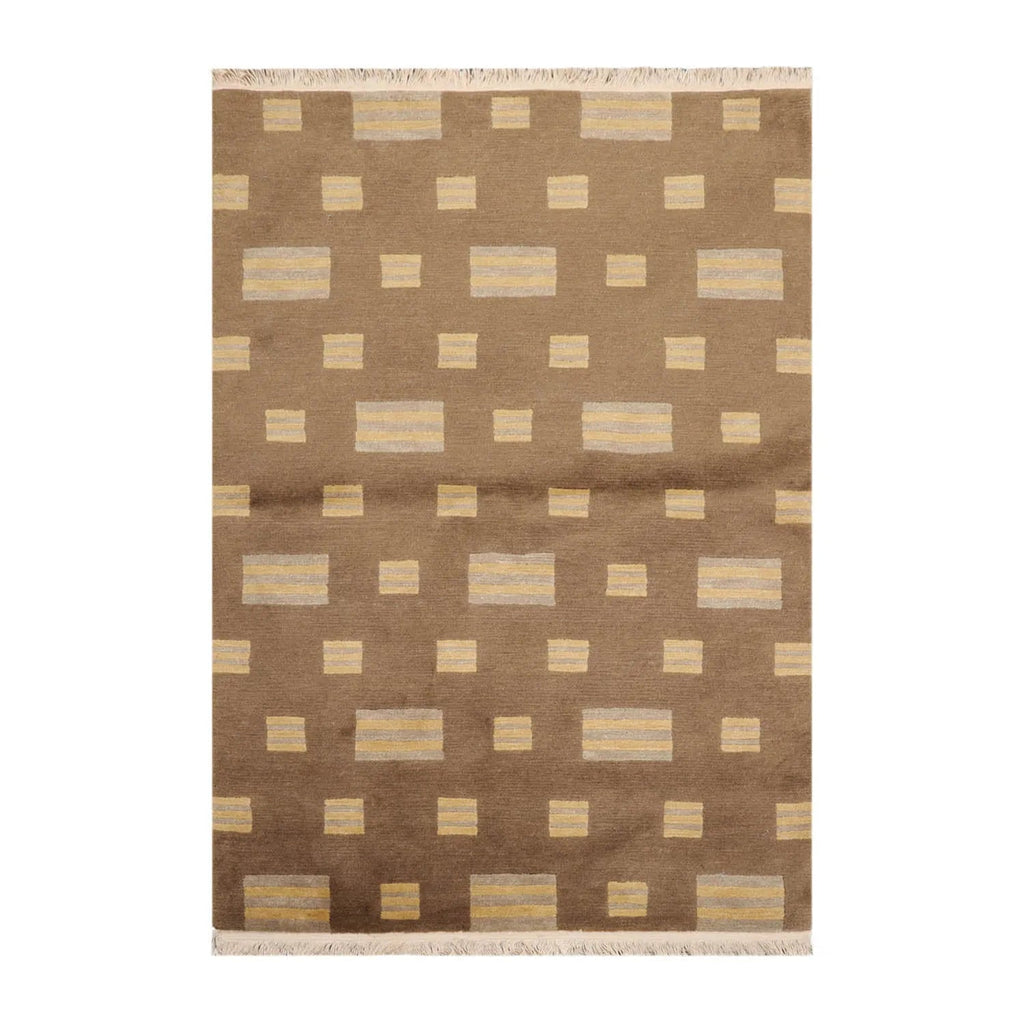 Story Behind the Art For centuries Tibetans have used rugs for decorative and functional purposes, drawing upon geometric patterns, auspicious symbols, real and mythical animals, and natural imagery to create beautiful, colorful designs. But it was only after 1959 with the Chinese invasion of Tibet and the growth of Tibetan diaspora in Nepal and Tibet that Tibetan rug weaving underwent a crucial commercial revival. In the 1970s, Tibetan rugs rose to prominence and Nepalese artisans, drafted in to keep up with the rising demand, became the mainstay of the Tibetan rug weaving traditions. While either Turkish knot or the Persian knot (Senneh knot) is used to create the pile or depth of a rug in most of Asia, the Tibetan rug utilizes a slit-loop technique called the Tibetan knot. Here rugs are woven by wrapping a continues length of yarn over a rod laid across the warps stretched on the loom. When the rod has been wrapped for its entire length, a knife is slid along the rod, cutting the wrapped yarn into two rows of pile tufts. The resultant pile is a wonderful mix of depth, texture and richness. Traditional Tibetan rug motifs generally reflect the importance of Buddhist religion in Tibetan art and culture. Many design elements of Chinese origin like the phoenix, dragon, and lotus symbols alongside motifs from Chinese decorative tradition have also been assimilated in the rug repertoire of this region. In modern times, designs featured in Tibetan, Nepalese rugs (those woven by Tibetan refugees in Nepal) and Indo-Tibetans (woven in India) range from Westernized adaptations of traditional Tibetan motifs (such as branching floral designs and snow lions) to a large mixture of foreign and modern free-form patterns.