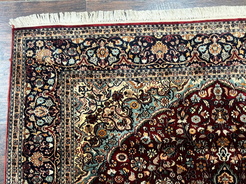 4x6 Silk Rug, Very Fine 650 KPSI, Silk Persian Carpet, Red, Floral Medallion, Sino Persian