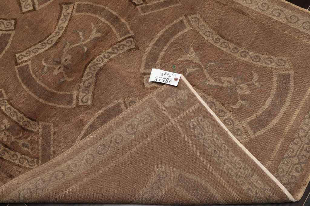 4x6 Taupe Hand Knotted Tibetan Transitional All-Over Wool & Silk Oriental Area Rug