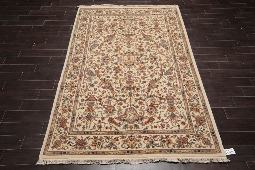 5’10" x 8’11" Hand Knotted Wool & Silk Sino Persian 200 KPSI Area Rug Ivory Tan