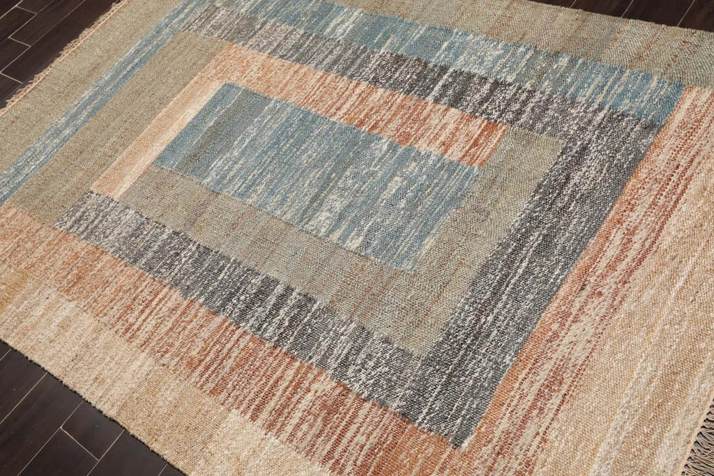 5’3” x 7’6” Hand Woven Natural Fiber Jute Modern Flatweave Kilim Area Rug Blue