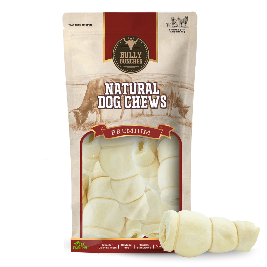 Bully Bunches 5 to 6 inch beef cheek rolls are hard, long-lasting chews designed for medium to large-sized canines. Not to be confused with rawhide, these fantastic 5 to 6 inch beef cheek rolls are made from the cheek meat of a cow. This cut of meat is very durable and contains lots of nutrients and collagen because it is one of the hardest-working muscles of the cow.