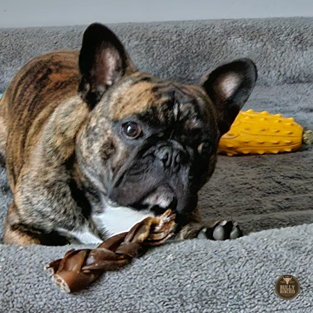 If you’ve got a dog with lots of energy, try giving him or her our braided collagen stick! These 5-6 inch braided collagen sticks are a long-lasting and healthy chew designed for powerful chewers in small statures. Our braided collagen chews last 20% longer* than bully sticks of the same size, which means more fun chew time for your fur child. Bully Bunches braided collagen chews are 100% beef skin made from the innermost layer, which contains the most collagen and has no rawhide. As a bonus, collagen promotes healthy skin, fur, muscles, and nail growth.