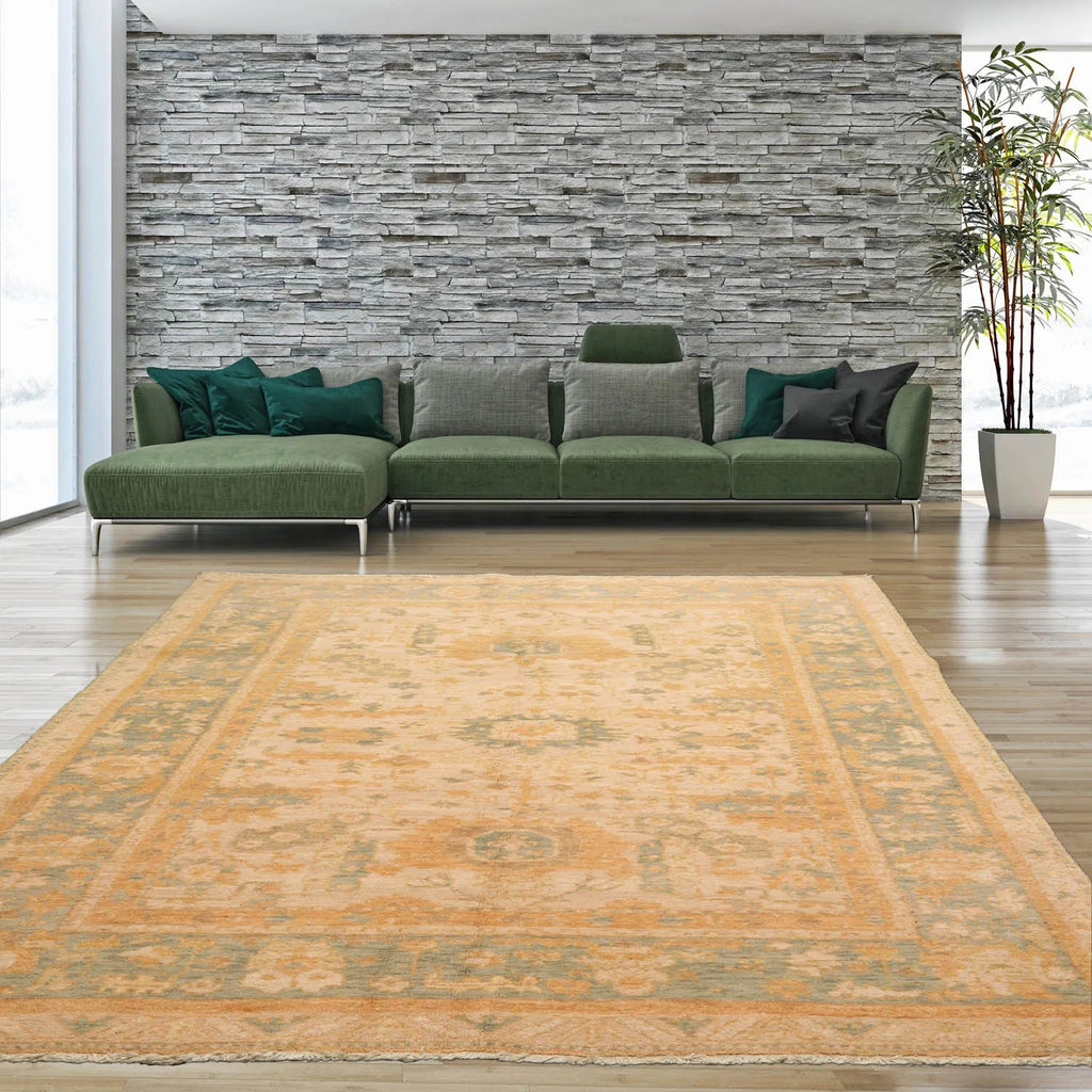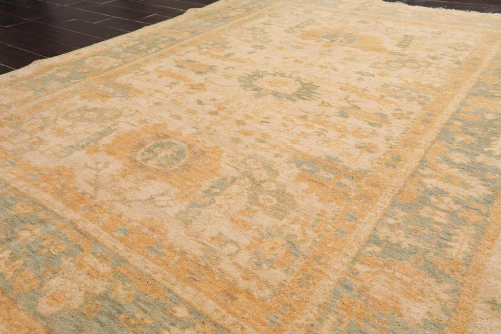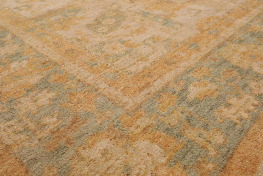 This is a beautiful Beige, Sage, Gold Color Hand Knotted, Caucasian Oriental 100% Wool Rug. Its elegant style is easy to decorate with and perfect for living room, dining room, bedroom or anywhere in the residence and office.