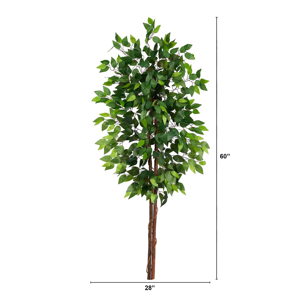 Looking for a timeless and elegant addition to your space? Look no further than our artificial Ficus tree. This exquisite piece captures the essence of nature with its lush canopy of leaves in an array of vibrant green shades, creating a stunning display in any corner. Meticulously crafted by skilled horticulturists using premium materials, the double trunks boast intricate details that mimic the beauty of real trees. Standing at a height of 5', it offers versatility and allows you to unleash your creativity by housing it in your favorite planter for a customized look. Embrace the beauty of nature in a subtle yet captivating way with this classic Ficus tree that is perfect for any compact space.