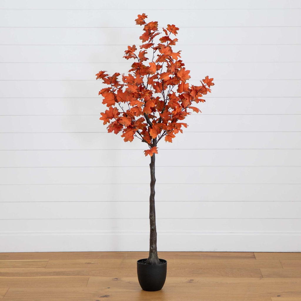 Transform your space into a fall oasis with our artificial rustic fall tree, bringing the rich, warm colors of autumn indoors without any upkeep. You can shape the branches just the way you like them, thanks to the high-quality, flexible materials. Standing 5' and set in a simple nursery planter, it’s easy to personalize with your favorite base. Perfect for adding a cozy touch to your home or office, this fall tree is all about celebrating the beauty of the season year-round. Great for a home office, Thanksgiving mantel, Halloween party or a simple dinner party. Easy to store and great to use year after year.
