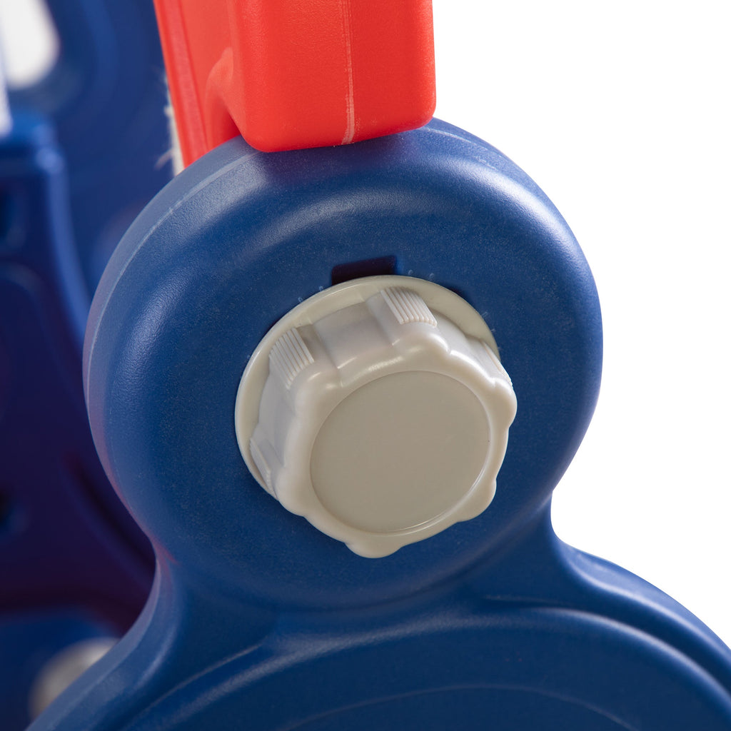 Color: Red+ Blue Main Material: HDPE + ABS Weight Capacity of Swing: 88 lbs Weight Capacity of Slide: 132 lbs Net Weight: 25.3 lbs
