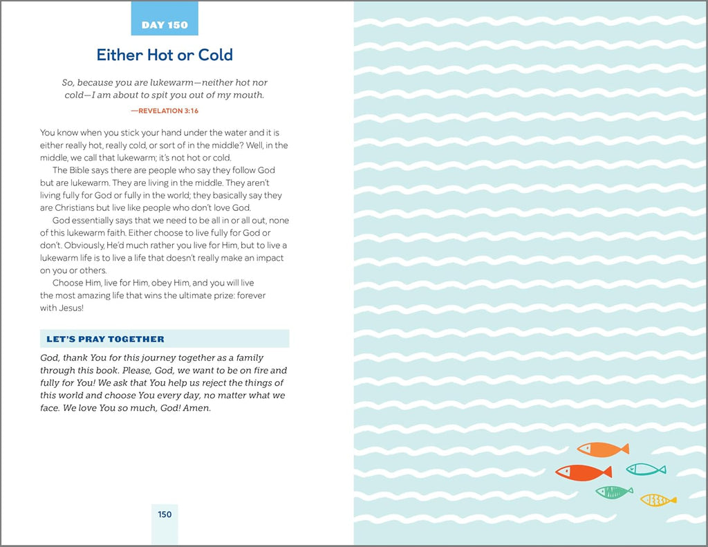 - 150 simple devotions―Each devotion includes a passage from Scripture paired with reflections and a prompt to pray, talk, or do an activity together as a family.