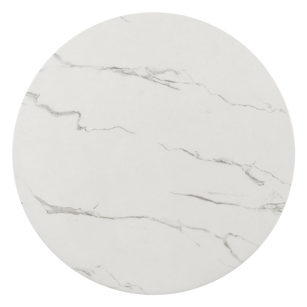 - #1[Shiny and Glossy Table Top] The simple elegantly-patterned Faux Marble Round Dining Table of 35”(diameter) and 30”(height) is crafted by a sophisticated technique, made of guaranteed MDF and marble veneer, providing lasting glossiness, sturdiness and durability. The table top gives a sleek and shiny finish, constantly in your kitchen or dining room.