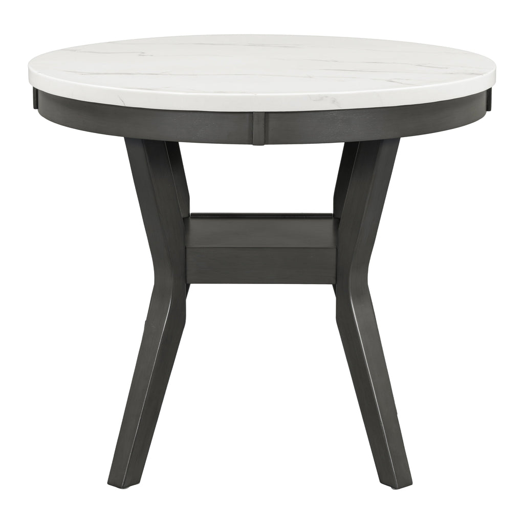 This round dining table set with a faux marble round dining table and 4 PU-leather chairs is a desirable addition to your dining room/kitchen. The table set with 4 curved rubber wood legs comes in an elegant and clean-outlined appearance, makes you to share every happy meal time with your family. The comfortable seating and spacing of the dining table is absolutely perfect for family dining and joyful intimate gatherings around this beautiful counter height table.