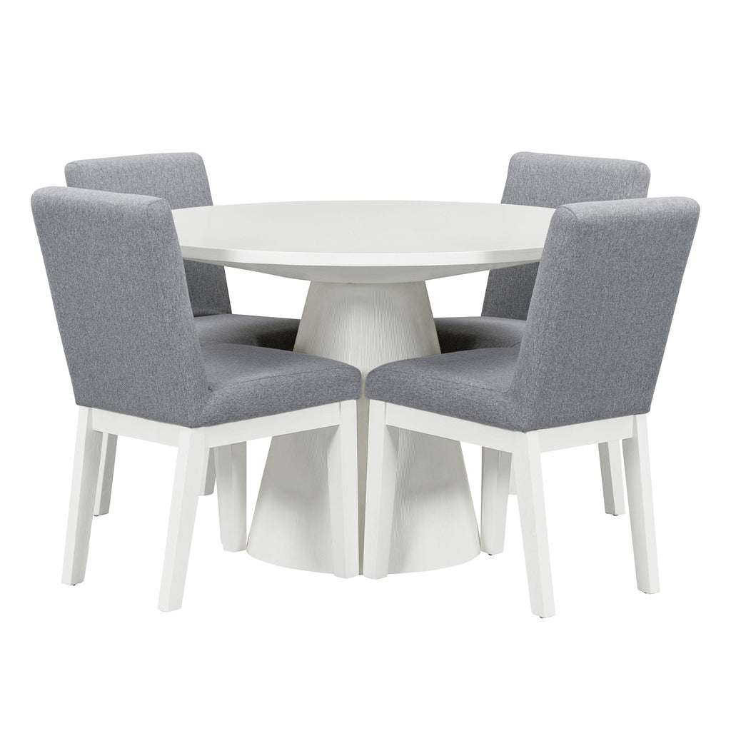 5-piece Dining Set Retro Round Table with 4 Upholstered Chairs for Living Room, Dining Room (White)