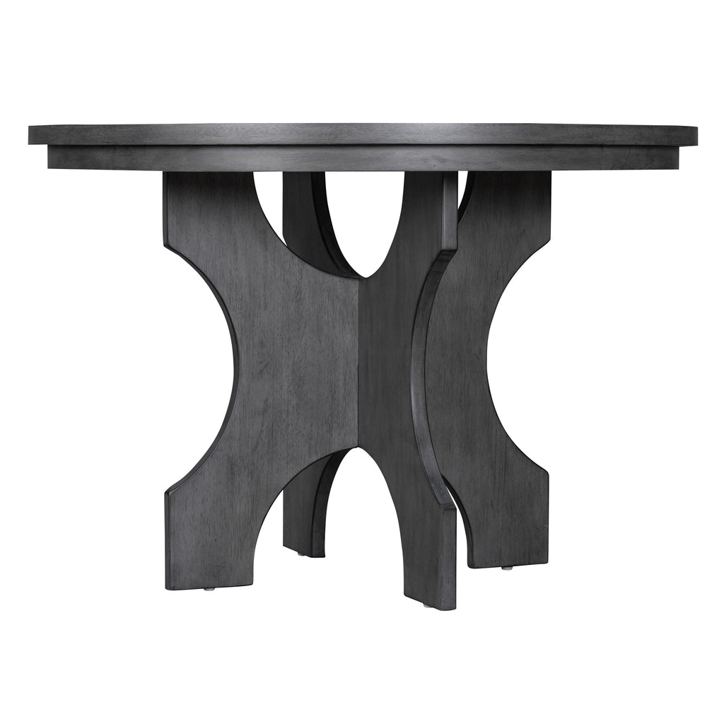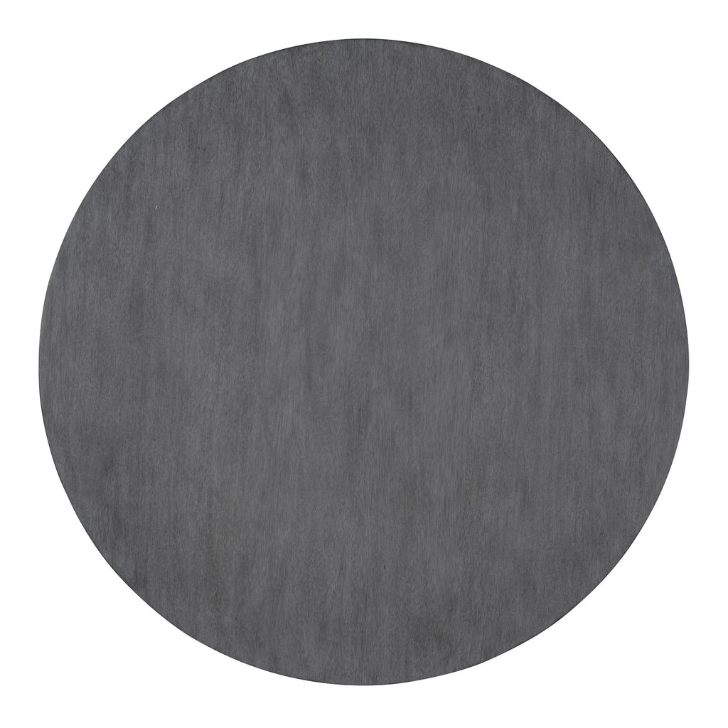 - This round table is made of MDF and solid wood veneer with a clear natural brushed finish on the top. Legs and frame are made of high quality rubber wood. Plinth-style legs provide excellent durability and stability. Plastic feet are installed at the bottom of the table legs to protect your floor.