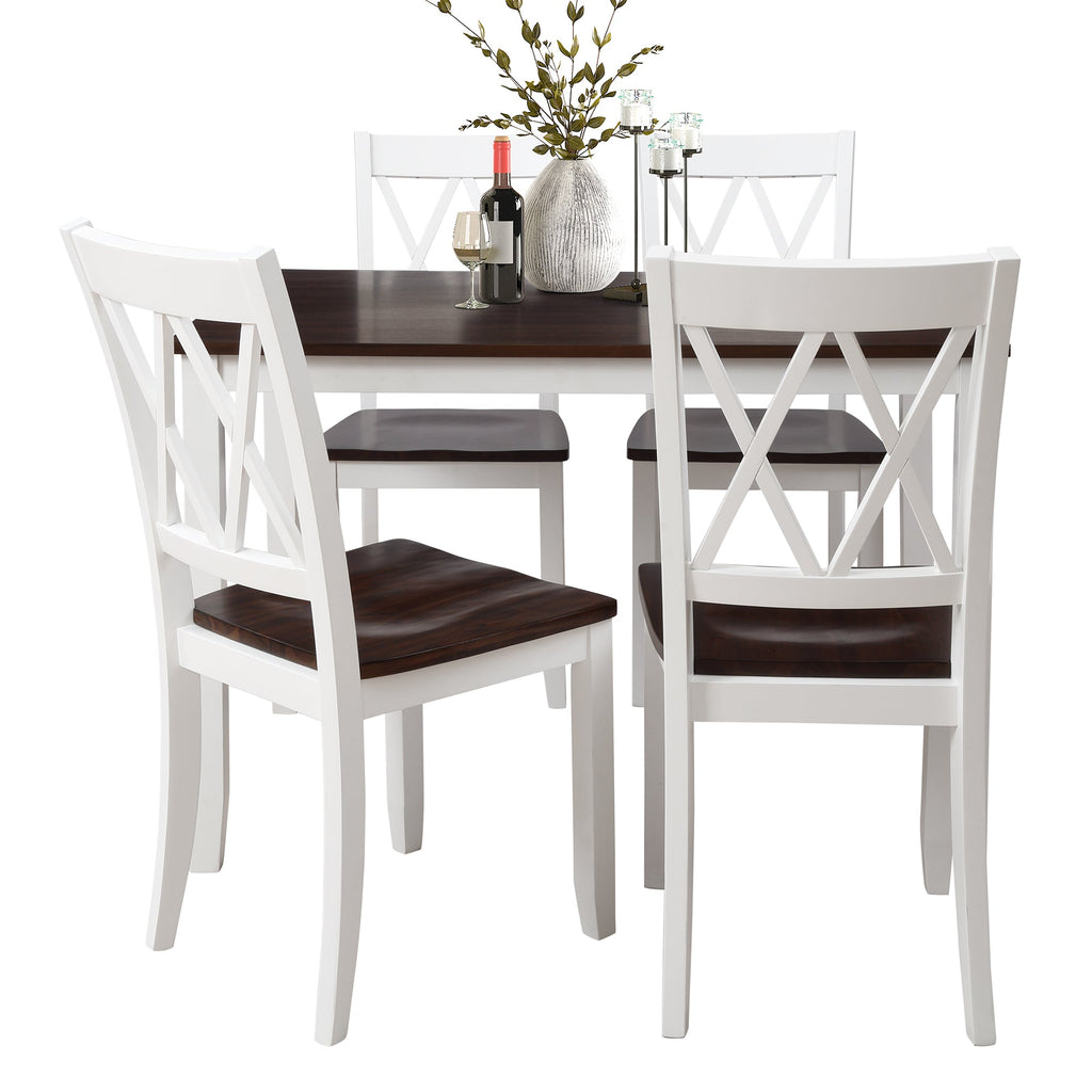 | Highlights | Solid Wood // Two Colors Option // Rectangular Table // X-Back Chair // Anti-slipping protectors // Dining Set for 4 |