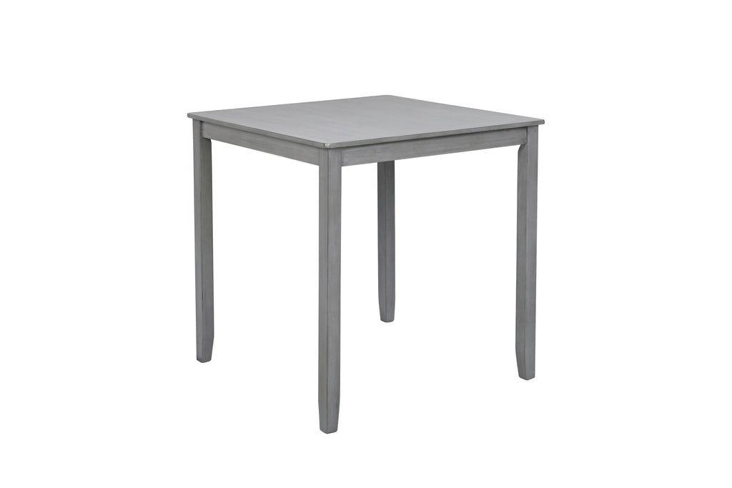 This 5 piece solid wood counter height dining set consists of a square table and 4 upholstered chairs. The table top is spacious and square and the slender tapered legs are both sturdy and flexible. With its sleek contemporary style and clean lines, this dining set is ideal for any dining room. The water and oil resistant high quality MDF and birch veneer makes it easy to clean with a simple wipe. The frame and legs are made from durable, high quality solid wood. The dining chairs feature a stylish vertical slatted back design, linen seat cushions and tapered legs for a relaxed dining experience. This versatile set is ideal for dining rooms, kitchens and dining areas!