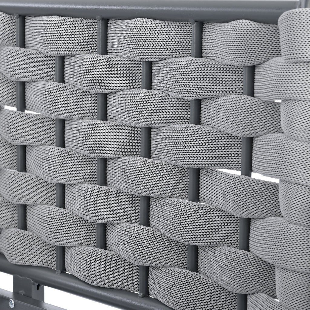 With a robust metal frame elegantly entwined with high-quality woven rope, this ensemble offers a sanctuary for up to 7 guests. It's the perfect stage for endless conversations, laughter, and the creation of memories, wrapped in the warmth of sophisticated design and resilient materials.