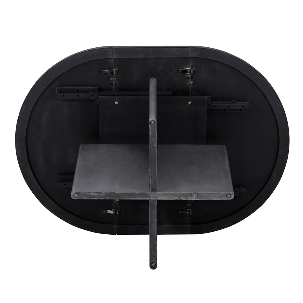 The round dining table features a 16-inch middle leaf to create an oval dining table of varying lengths for seating up to 6 people. The total length of the dining table is 58 inches, with the middle leaf removed the length becomes 42 inches. You can insert or remove the leaf as needed, switching the table back and forth between round and oval. The adjustable design will bring convenience to your life to a great extent.