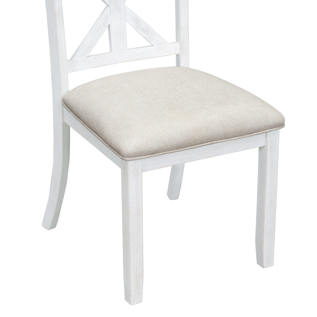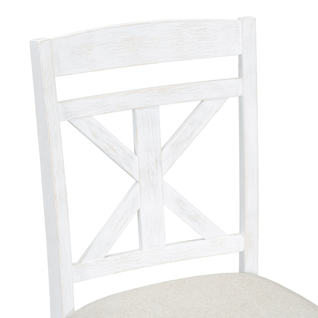 • High Quality: This vintage dining table set with wood pattern has good quality and adds understated elegance to your dining room. The main frame of the dining table set is made of solid rubberwood to ensure stability and durability for daily use. All four chairs are wrapped in linen as the seat cushion and filled with soft foam to provide you with a comfortable sitting experience. The weight capacity of the table and chair is separately 661 LBS and 330 LBS/PCS.