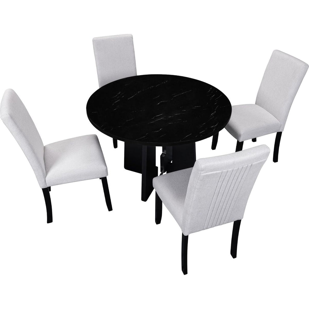 - [5 PIECE ROUND TABLE SET] This dining set includes 1 dining table and 4 upholstered chairs that easily seat up to 4 people, perfect for dinner with friends or a casual breakfast. Three color combinations are available to suit different scenarios, choose your favorite color combination!