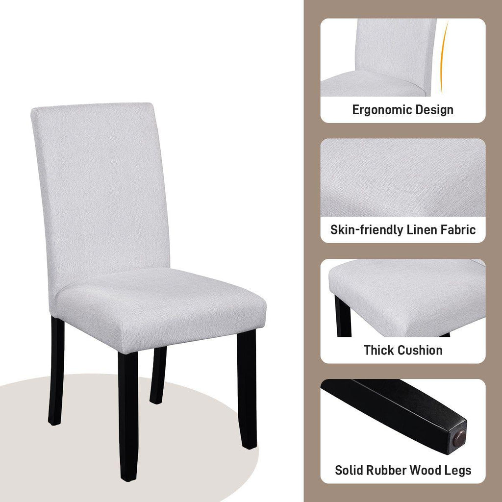- [COMFORTABLE DINING CHAIRS】This upholstered dining chair is wrapped in high quality linen and has an ergonomically curved backrest with high resilience foam to provide you with a comfortable sitting experience. The chair legs are made of solid rubber wood for extra durability and stability.
