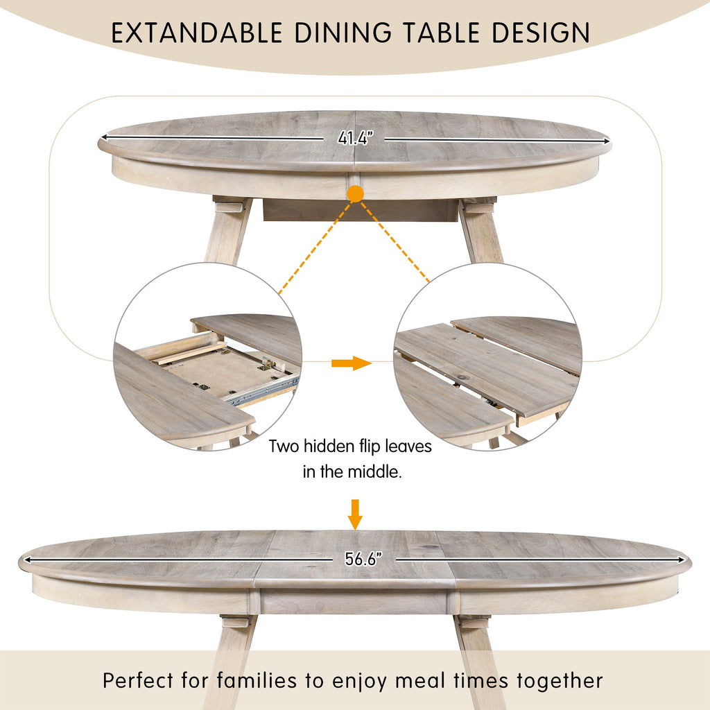 TREXM 5-Piece Wood Dining Table Set Round Extendable Dining Table with 4 Dining Chairs, Dining Room Table Set for 4 person for Dining Room (Natural Wood Wash)