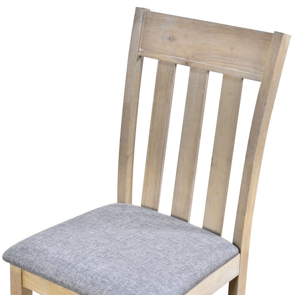 This set of tableware includes 1 table and 4 matching chairs, this multi-functional dining set seats up to 4 people, perfect for families to enjoy meal times together. This dining table set is marketed in two colors, gray and natural wood wash. The gray one match the gray cushion is suitable for minimalist home decor style or industrial home decor style. The natural wood wash one also matchs gray cushion is suitable for farmhouse home decor style.