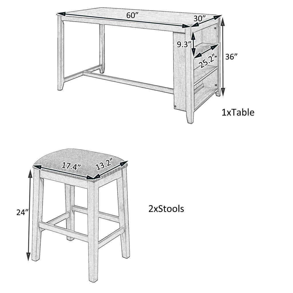 - [Dimensions] Table: 60x30x36inches (LXWXH). Stool: 17.4x13.2x24inches(LXWXH). Seat thickness:2.4inches. Warm notice that there are 3 packages for this set which may not reach at the same time.