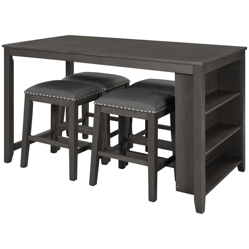 - [Space-saving Solution] Worried about lots of odds and ends? Built-in functional storage in this set offers a practical solution for you. With a 3-tier shelf, dishes, bottles and other stuff have their own places while keeping them in handy. All of stools can also be stacked under table easily to release more room.