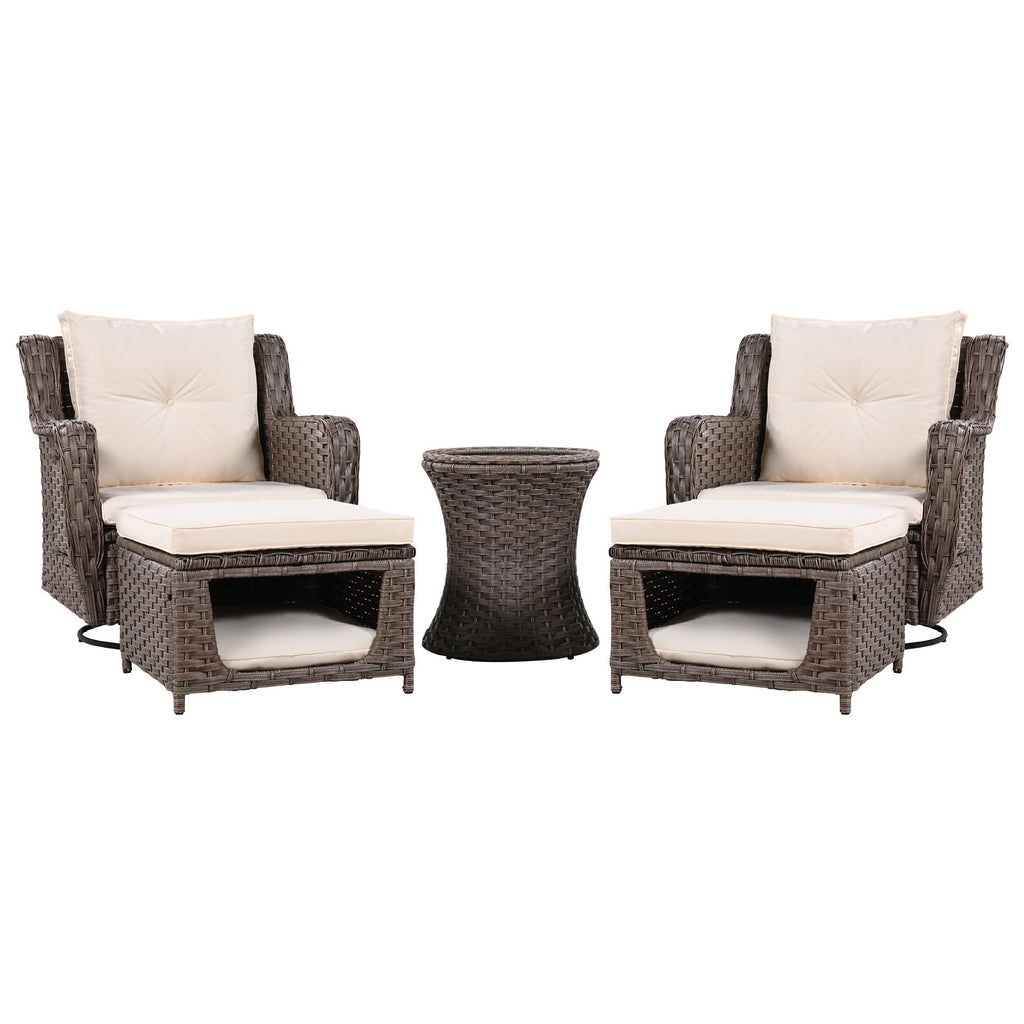 - [360° Swivel & Rocking Chair with Pet House] Indulge in the ultimate freedom of movement with the rocking/glider feature. This patio swivel chair boasts a 360-degree rotation on its base. What's more, the front and back rocking design of this dining chair provides an extra touch of relaxation. The ottomans are designed with a built-in pet house and cushion, providing a comfortable space for your cats or dogs to play.