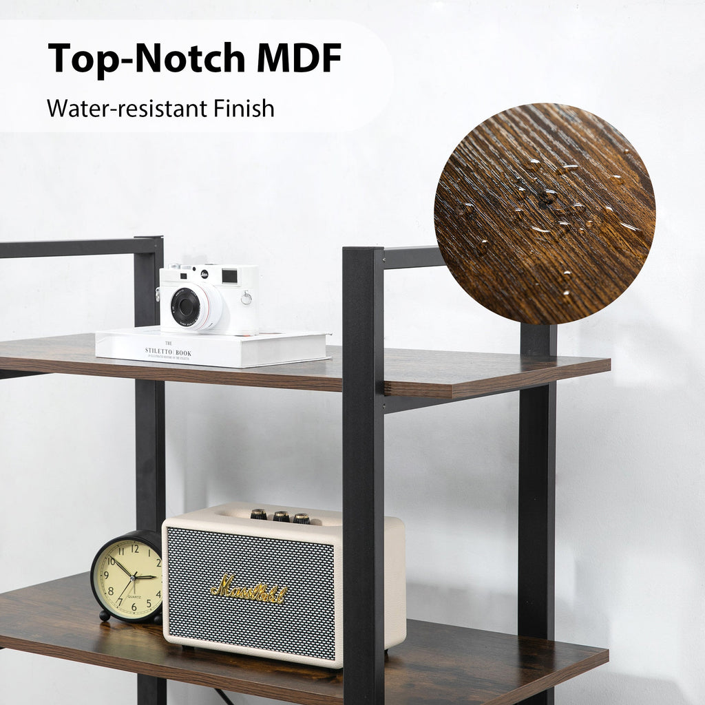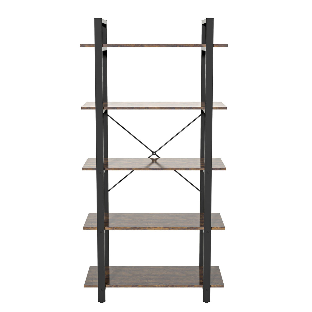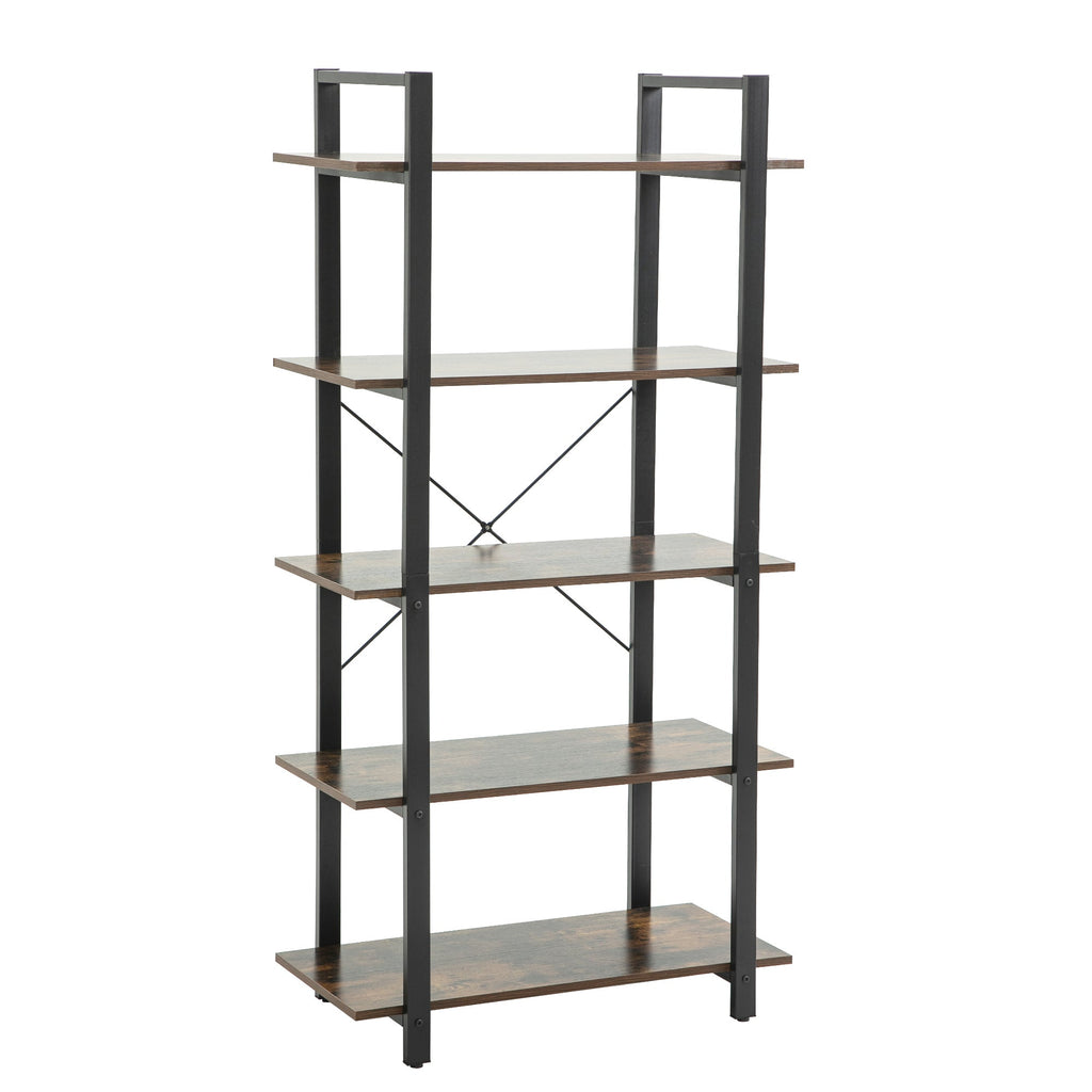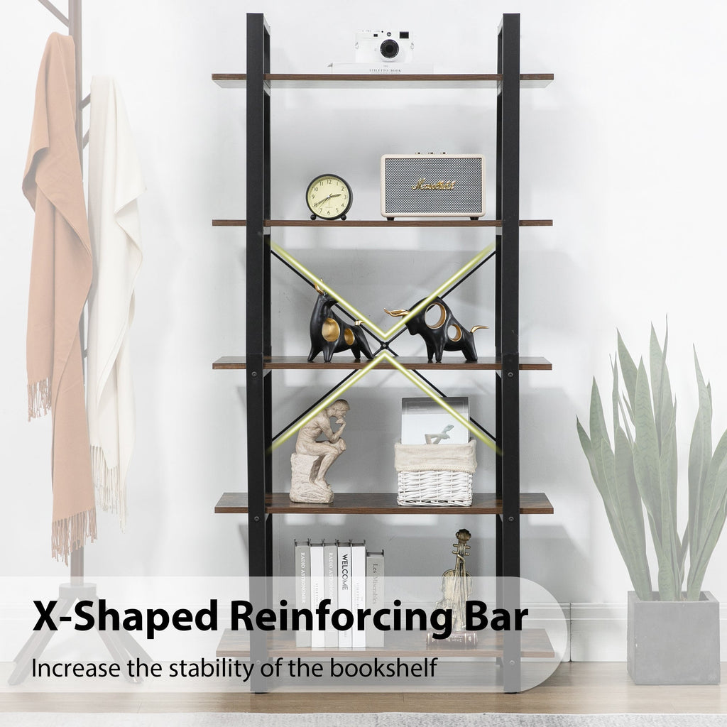 5-Shelf Vintage Industrial Rustic Bookshelf, 5 Tier Wood and Metal Bookcase, Open Etagere Book Shelf, Farmhouse Wooden Bookshelves, Vintage Brown