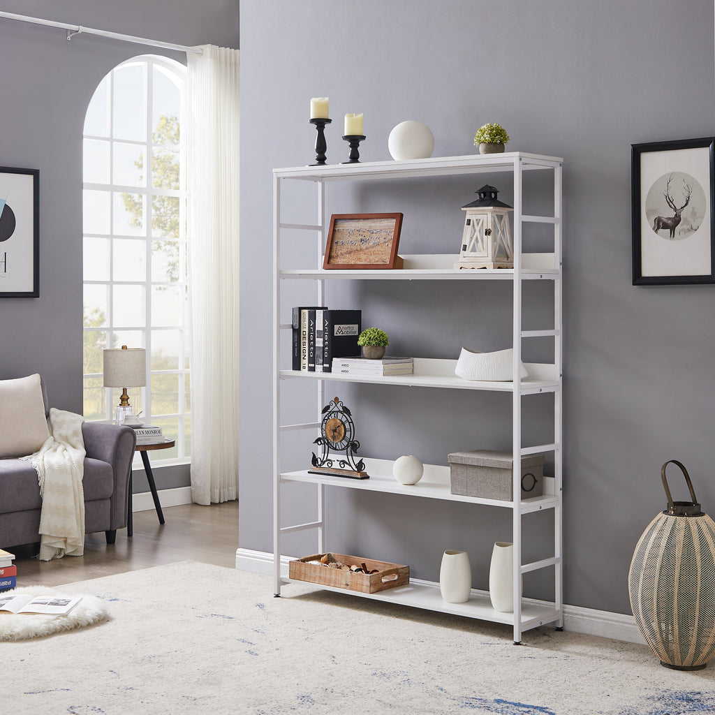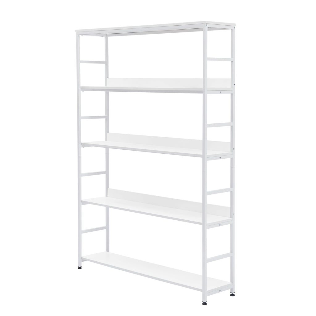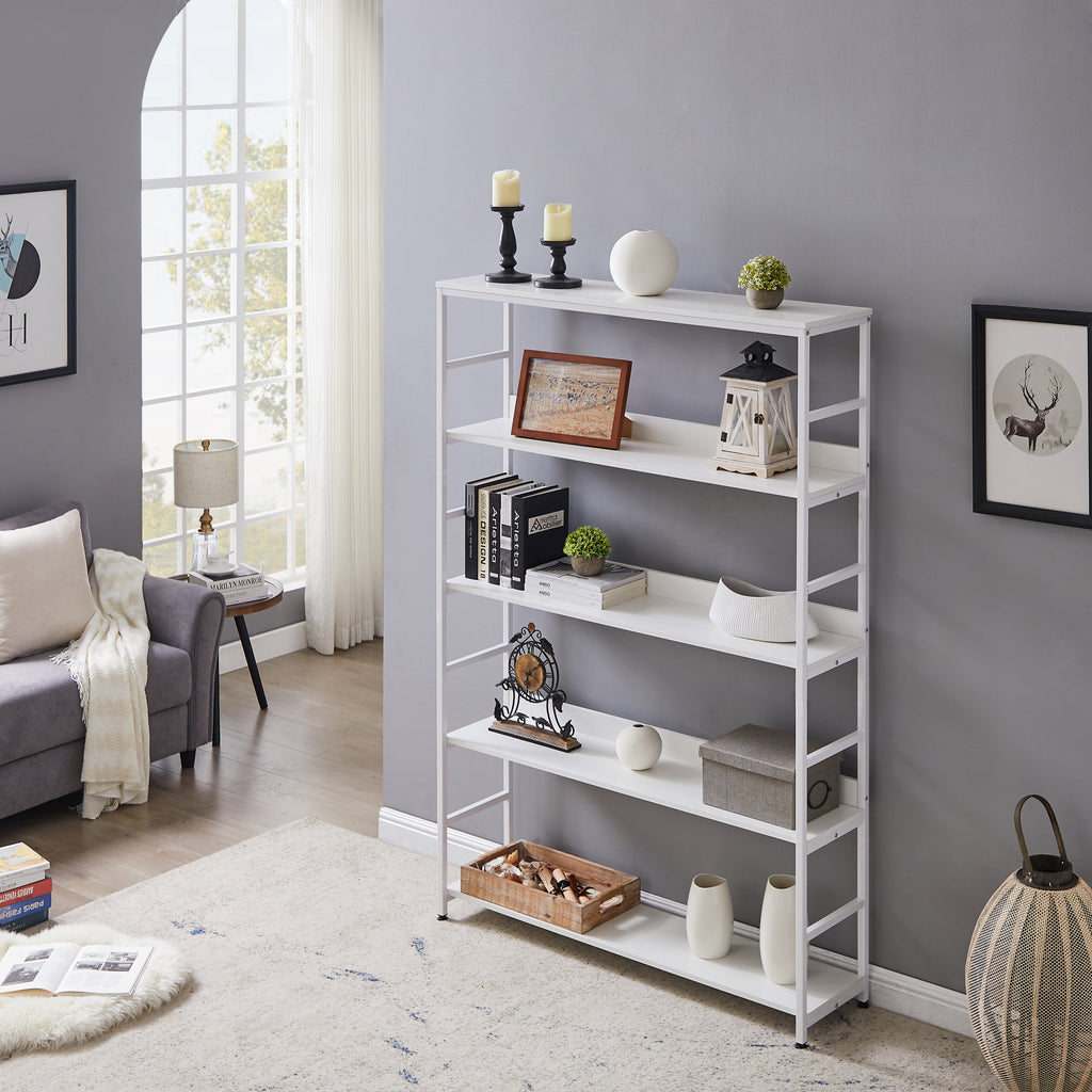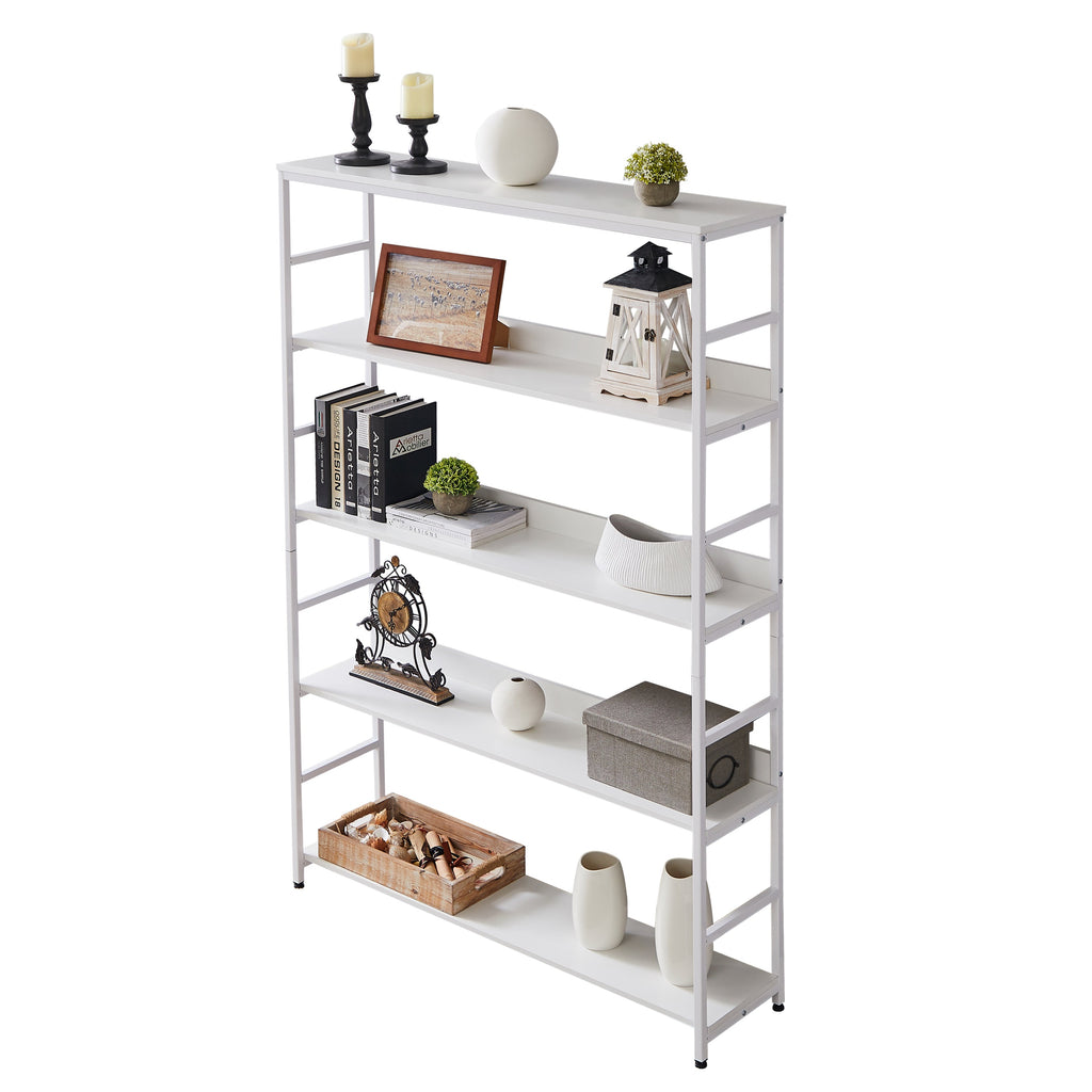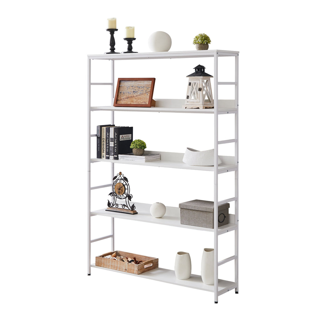 5-Tier Home Office Bookcase Open Bookshelf Storage Large 5 Shelf Bookshelf Furniture with Metal Frame, White