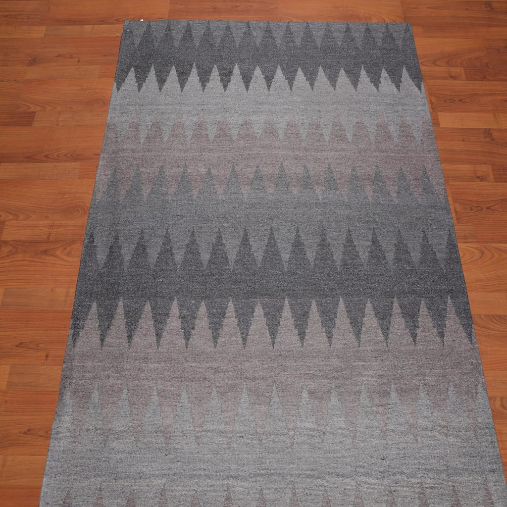 This is a beautiful Light Grey, Dark Grey, Faded Aubergene Color Handmade Flatweave 100% Wool Rug. Its elegant style is easy to decorate with and perfect for living room, dining room, bed room or anywhere in the residence or office.