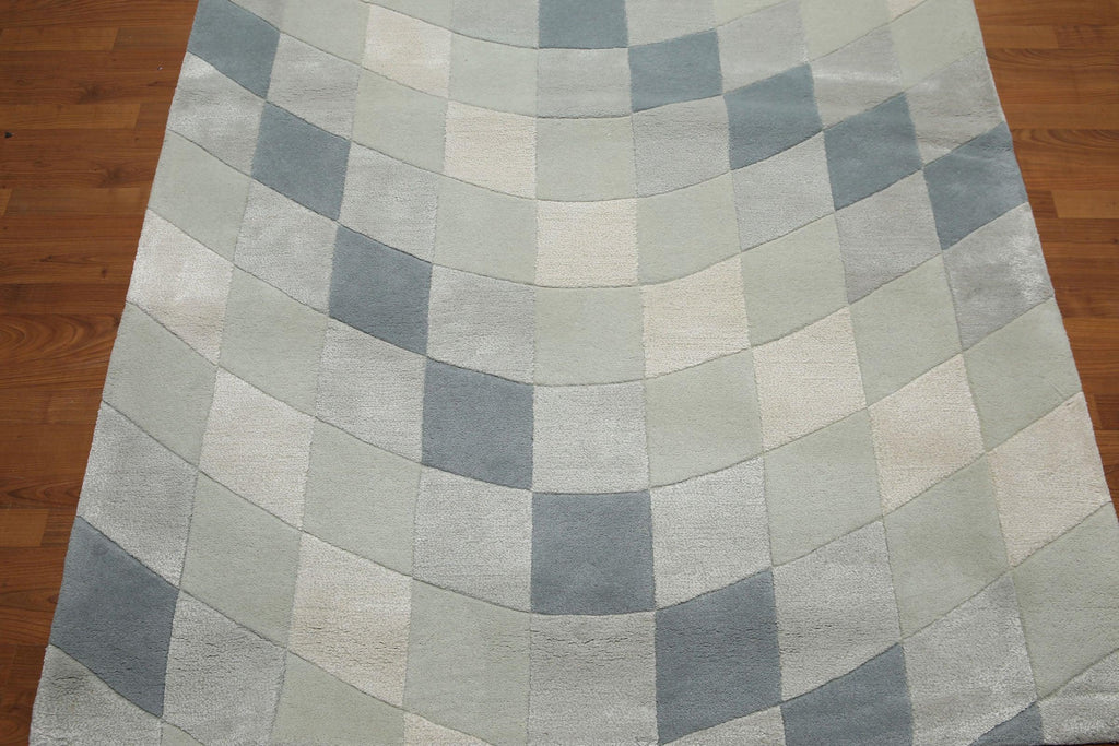 This is a beautiful 5'x7'6" Sea Foam, Beige, Gray, Color Hand Tufted Delos Style Wool and Viscose Oriental Rug. Its elegant style is easy to decorate with and perfect for living room, dining room, bed room or anywhere in the residence and office.