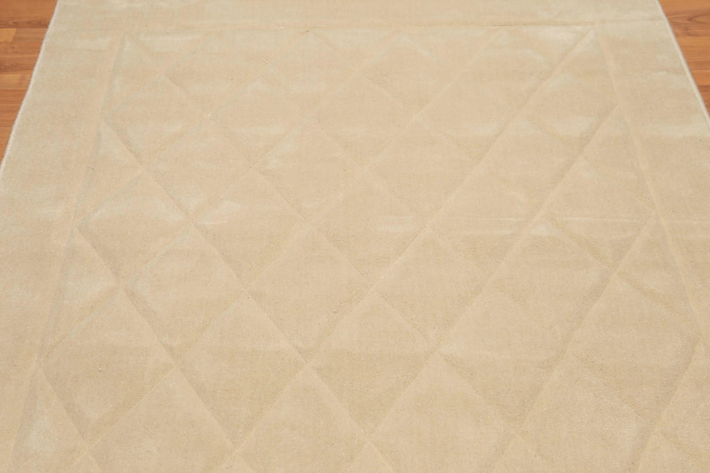 5' x 8' Designer Embossed Diamond Pattern 100% Wool Area Rug Beige