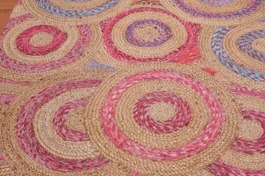 5' x 8' Hand Braided Circle Medley Sisal & Cotton Oriental Area Rug Multi