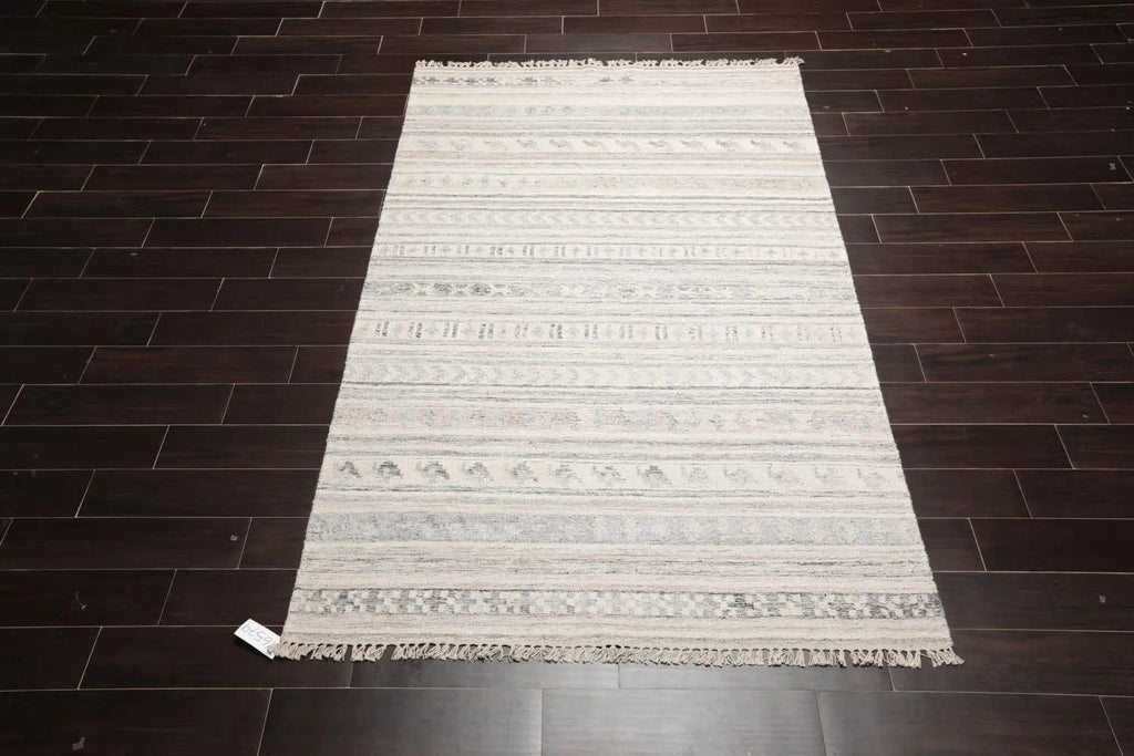 5' x 8' Hand Woven Wool Southwestern Flatweave Kilim Oriental Area Rug Beige