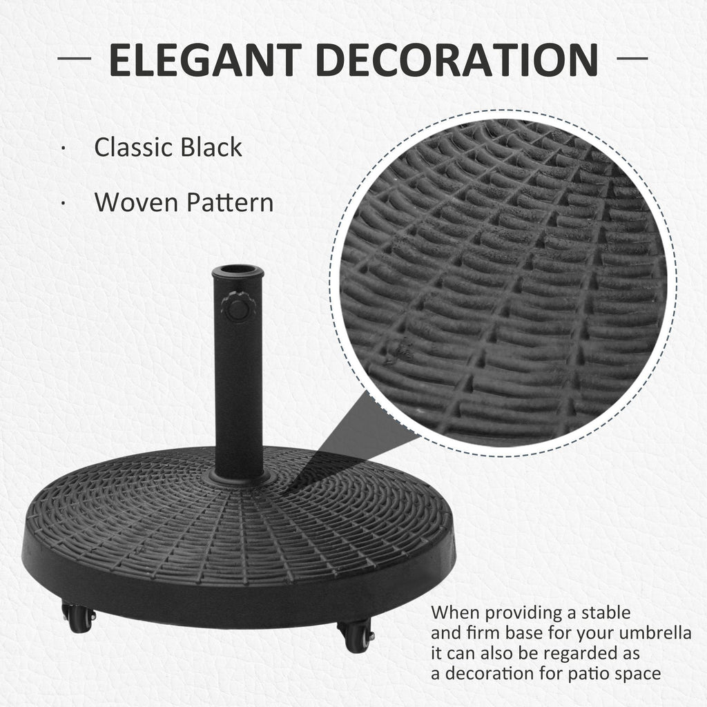 50 lbs. Umbrella Base, 20.5", Round Heavy Duty Umbrella Stand with Wheels for 1.5" or 2" Umbrella Poles, Patio Market Stand for Outdoor, Lawn, Deck, Poolside, Black