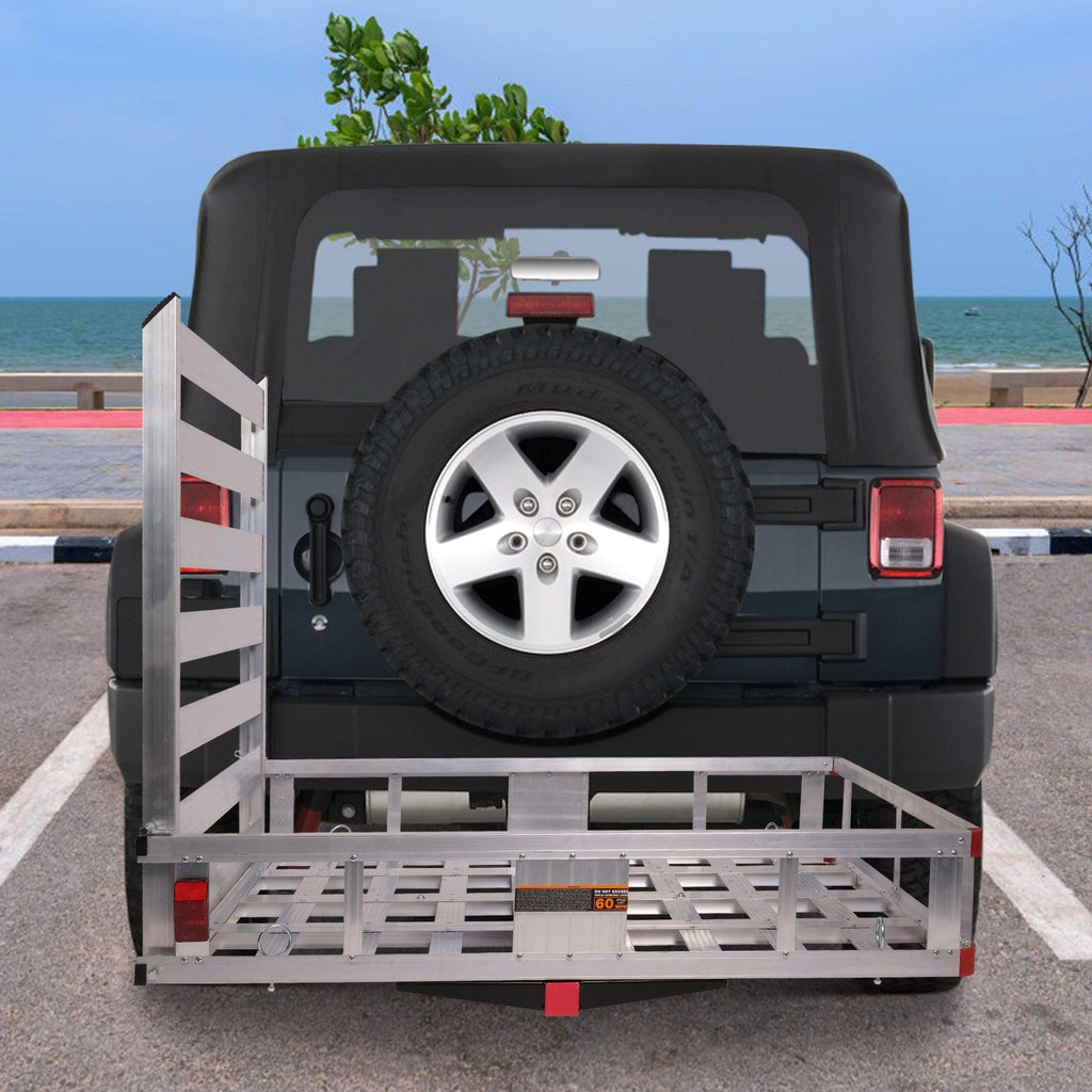 50"x 29.7" Hitch Mount Cargo Carrier Trailer Aluminum Utility Basket with 41.5" Folding Wheelchair Ramp, Silver