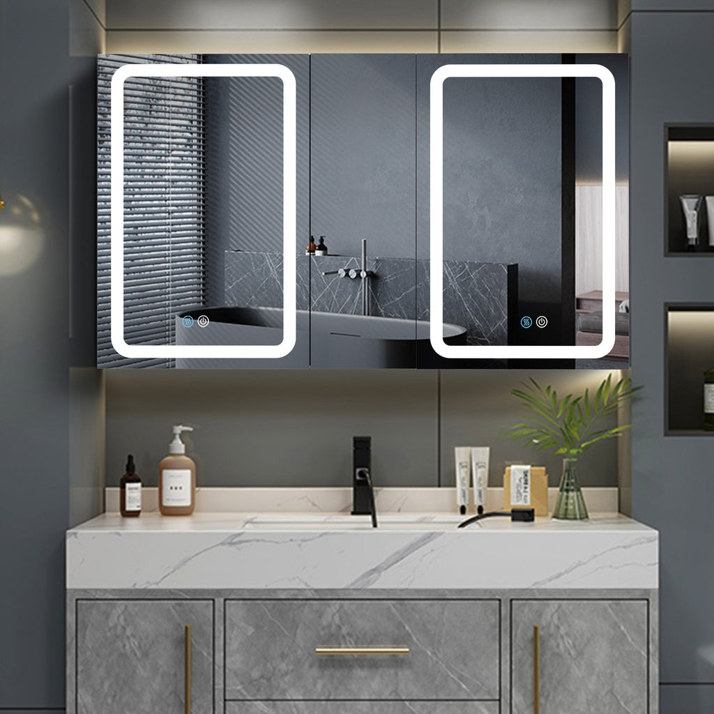 1. 3 color temperature, dimmable led with long press to adjust the brightness. Lighted medicine cabinet can be adjusted from 10% to 100% brightness to match your preferences. The led medicine cabinet 3000K-6400K Three-color and stepless color temperature adjustment satisfy your desire.