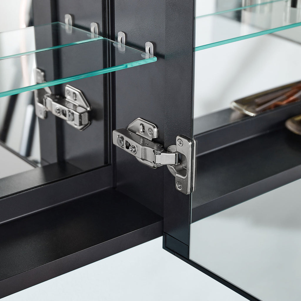 2. Defogging and IP44 waterproof. Our medicine cabinet newly developed technology enables mirror surface close to 40°C in a short period of time to achieve a faster and safer defogging effect. The defogging automatically turns off while the light is off. IP44 rated waterproof aluminum frame medicine cabinet provide better durability and safety in your bathroom.