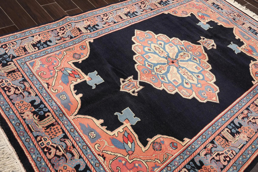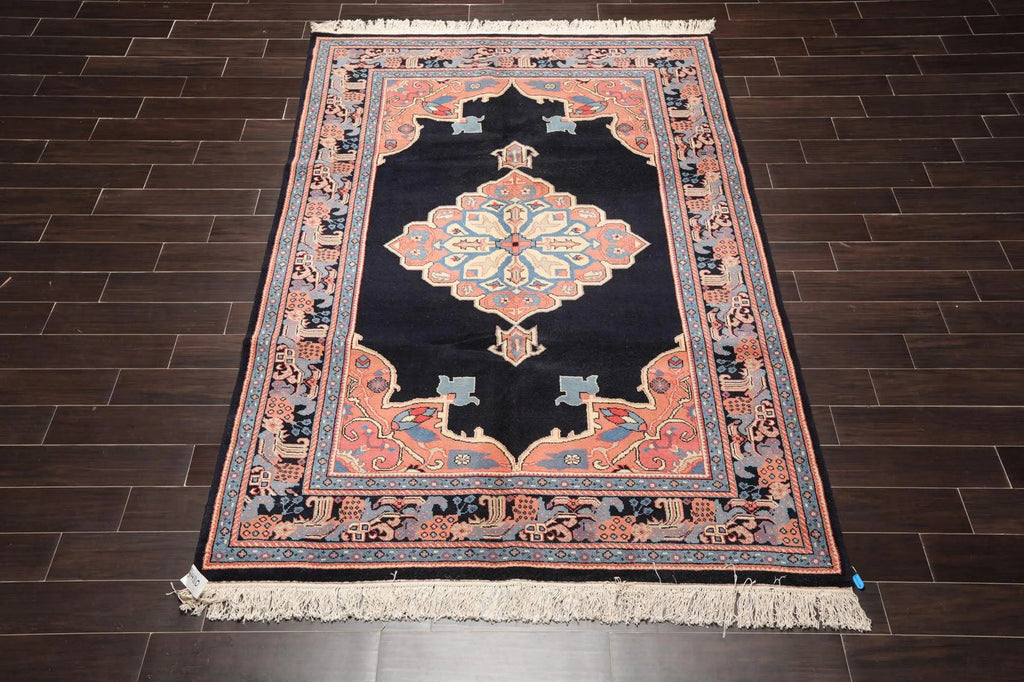 5'10'' x 8'10'' Hand Knotted 100% Wool Hamedaan Romanian Area Rug Midnight Blue