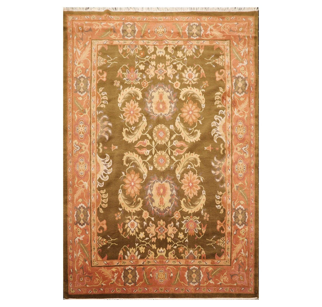 5'10'' x 8'9" Hand Knotted Tibetan Wool Classic European Area Rug Olive