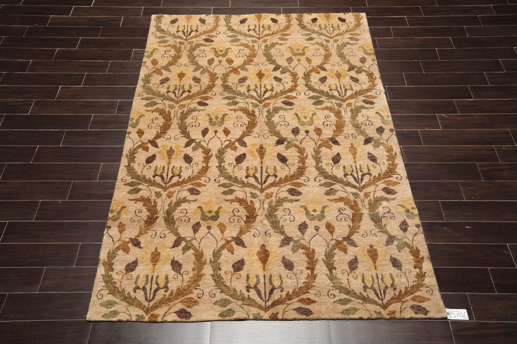 This is a beautiful Tan, Brown, Olive Color Botanical design Hand Knotted, Oriental New Zealand Wool Rug. Its elegant style is easy to decorate with and perfect for living room, dining room, bedroom or anywhere in the residence and office.